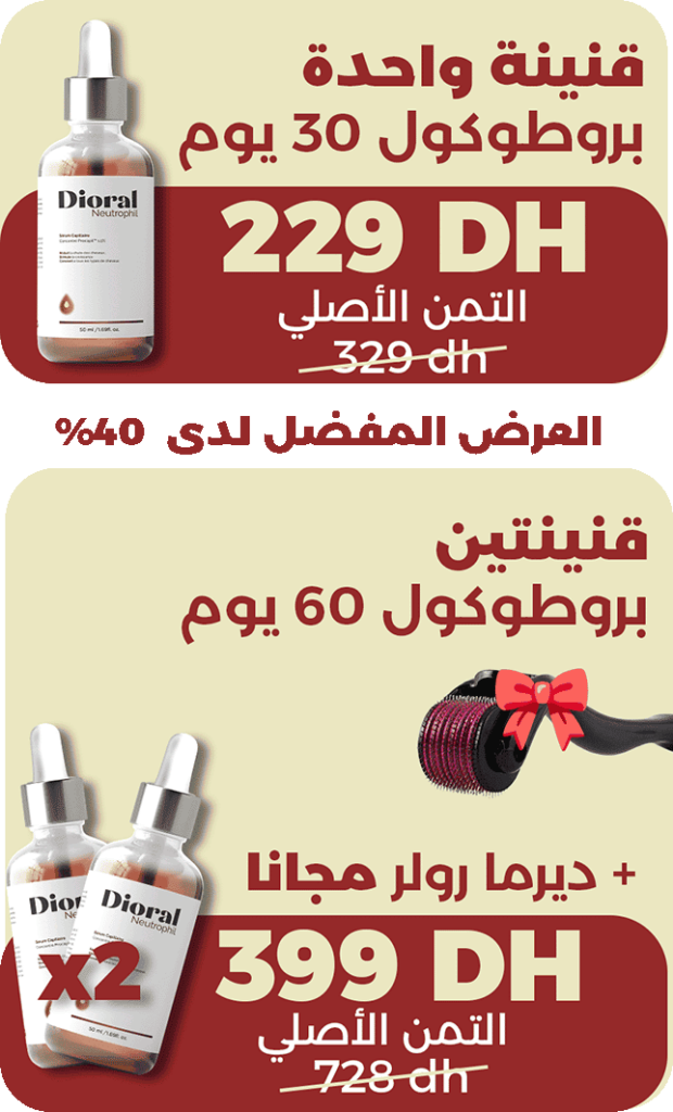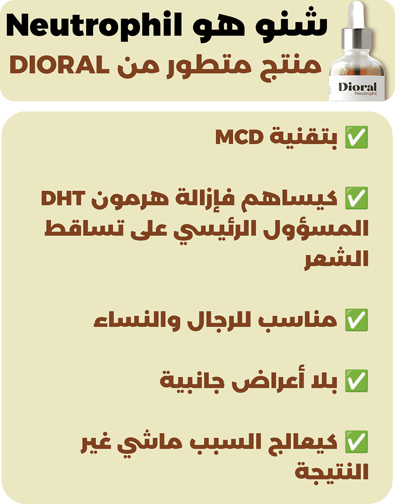 كنت نعاني من الصلع، خصوصا من قدام. من نهار استعملت سيروم Neutrophil ديال Dioral، بديت كنلاحظ الفرق من أول شهر. الشعر ديالي بدا ينبت. الله يجازيكم بخير على هاد المنتج